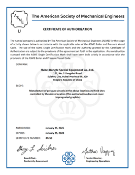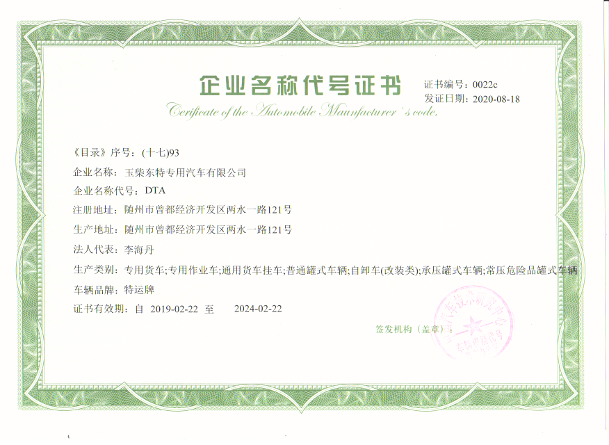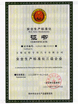 公司先后獲得湖北省高新技術企業、多次被湖北省國家稅務局、湖北省工商局、隨州市工商局授予"A級納稅人”、”守合同重信用企業” 等光榮稱號, 被中國農業銀行湖北分行 授信為"AAA" 等級企業。公司分別通過了國家"CCC" 強制性認證和IS09001: 2000質 量體系認證,獲得國家質量監督檢驗檢疫總局頒發的危險化學品包裝物、容器《全國工業 產品生產許可證》,取得湖北省安全生產委員會頒發的《危險化學品包裝物容器定點生產企業》證書,擁有國家A2、C2、 C3壓力容器制造許可資質AMS制造證和中國船級社廠 制造許可資質等多項專業資質及國家產品專利。